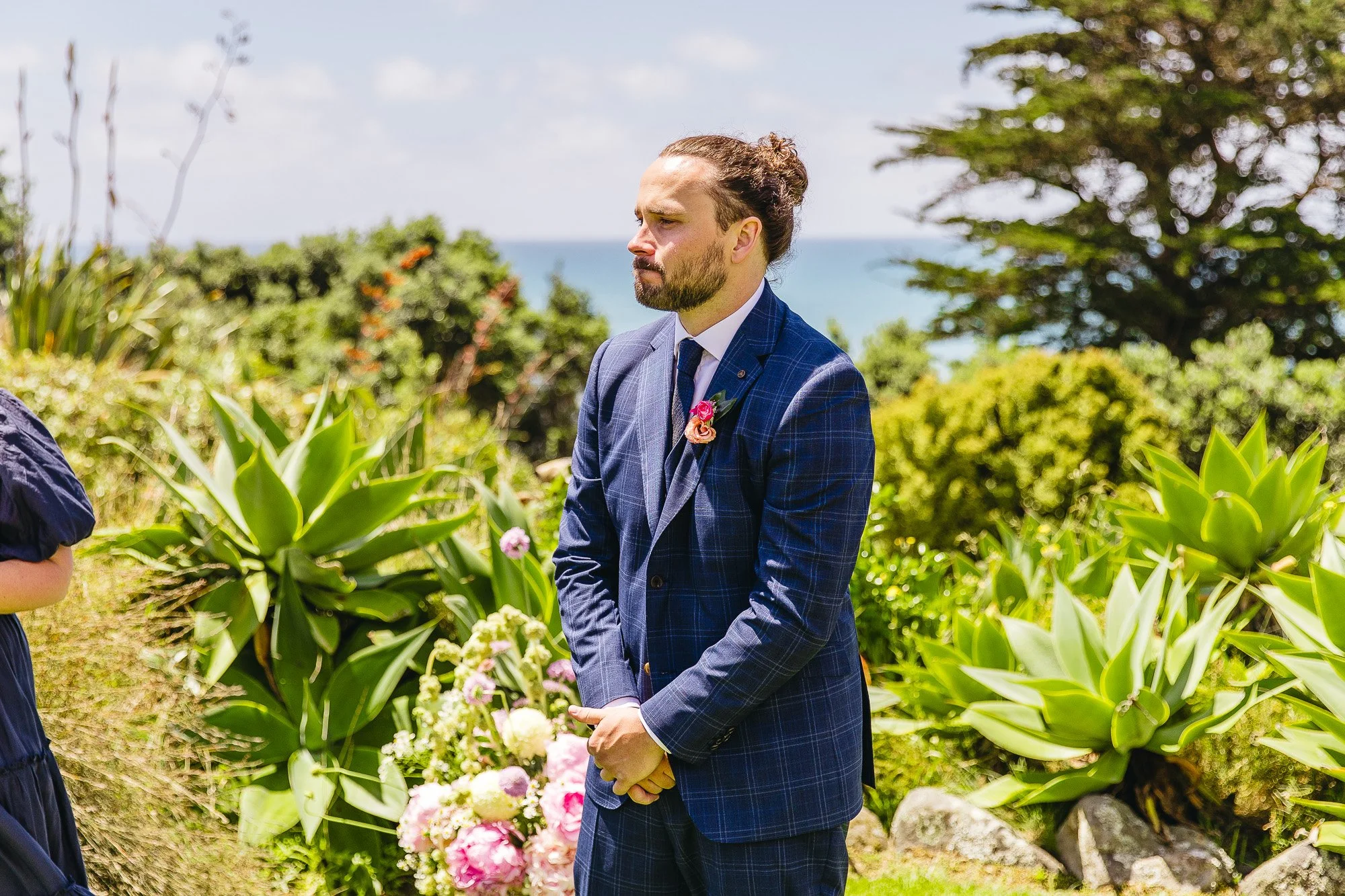 Their ceremony, beautifully led by Thais Farrant, was heartfelt and intimate, with plenty of teary eyes all around. Standing on the coastal lawn with the ocean behind them felt like the perfect place for these two to say their vows.